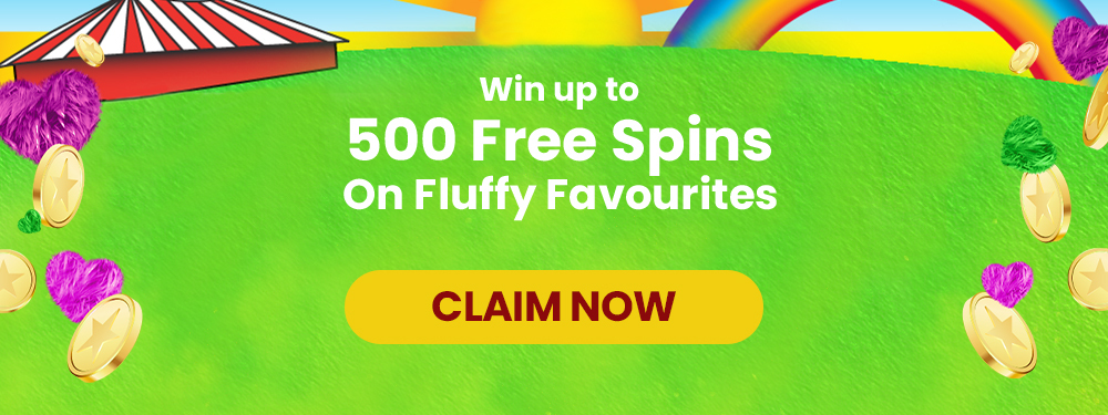 Make your first deposit today to claim our exclusive offer: spin your Mega Wheel for your chance to win up to 500 Free Spins on Fluffy Favourites!